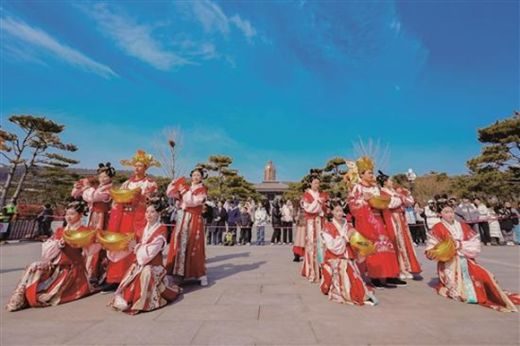 三孔景区的年味儿,藏着千年儒韵与马年新意。“孔府过大年·骐骥驰骋年”系列活动热度攀升,万仞宫墙下,晨钟开城仪式庄重恢弘,身着汉服的演员款款巡游,沉浸式还原古礼年俗,吸引着市民游客驻足观赏、拍照留念。大成殿旁的“马到成功”打卡墙前,孩子们踮着脚尖比划姿势,家长们举着相机记录欢乐瞬间;后花园的投壶区里,老少同台竞技,欢声笑语不绝于耳;“背《论语》免费游三孔”活动更掀起国学体验热潮。泗水仲庙里新年祈福的游客络绎不绝,仲子文化广场上好戏连台,火壶、打铁花、舞龙舞狮火热上演,文艺表演座无虚席,古装NPC定时巡游,游客在互动游戏和特色美食体验中感受地道年味。