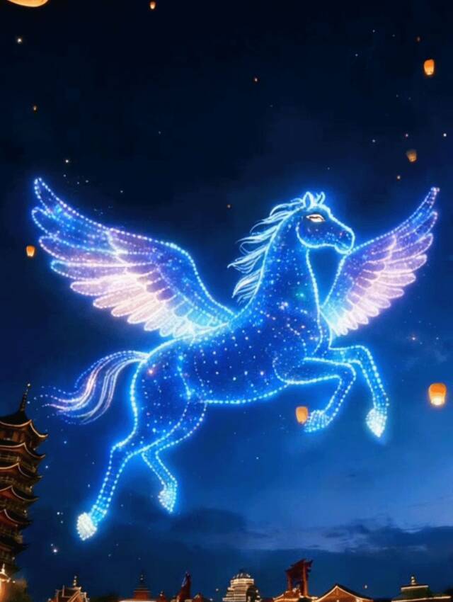 在济南,方特东方神画推出的“神骏巡天”千架无人机星空秀,每晚在园区上空震撼上演。千架无人机腾空而起,变幻出骏马奔腾、新春祝福等绚丽图案,与地面花灯交相辉映,为游客带来一场科技感十足的光影盛宴。