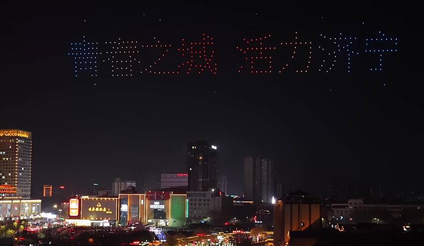 以科技为笔、夜空为幕,山东多城上演无人机编队光影秀。