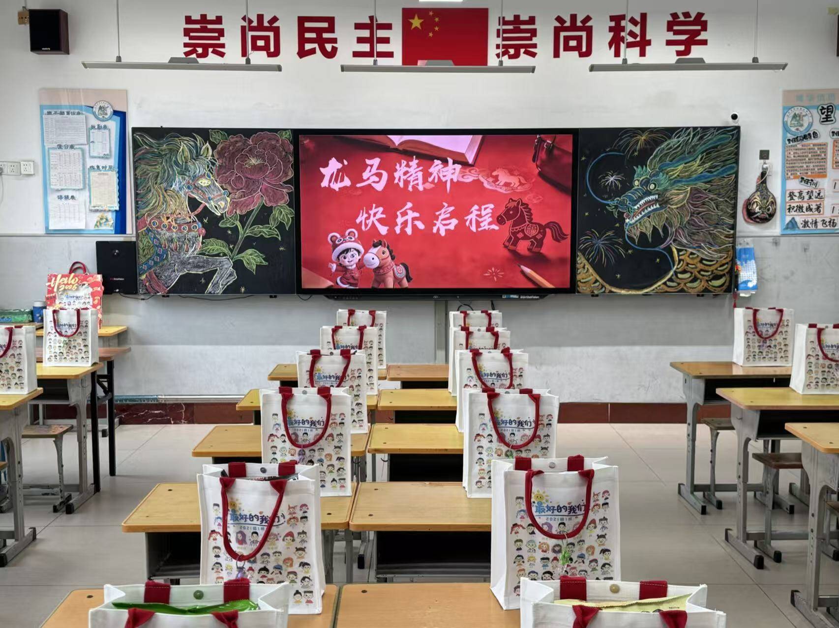 在校领导与老师们的迎接下,同学们朝气蓬勃走进校园,在西门领取专属开学福气红包,感受浓浓的开学仪式感。各班开展“智能蹁跹蕴国风,骐骥驰骋赴山海”开学第一课,大操场典礼上,各年级展特色共同体节目,含非遗、科创、歌舞等形式,校长致辞寄望新学期,活动融文化与趣味,营造昂扬开学氛围。