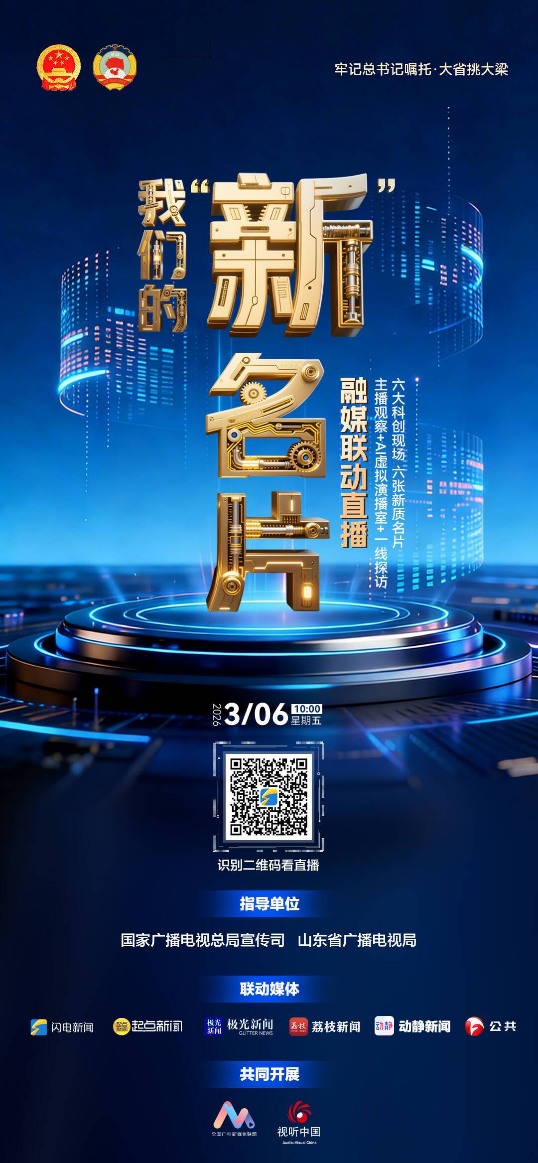 3月6日10:00,闪电新闻联合起点新闻、极光新闻、荔枝新闻、动静新闻、安徽广播电视台公共频道,共同推出《我们的“新”名片》融媒联动直播。深入六大科创产业现场,递出六张“新质名片”。直播首创“主播观察+AI虚拟演播室”模式,通过多视角、沉浸式的AI交互演播室,与多路一线探访记者实时连线,全景式、立体化展示各地以“新”破局、以“质”致远,走好因地制宜发展新质生产力的生动实践。