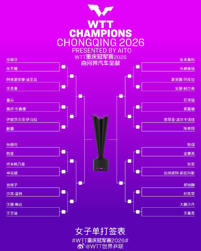 WTT重庆冠军赛2026