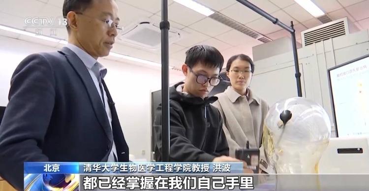 清华大学生物医学工程学院教授 洪波:这个脑机接口里面的软件、算法都是自主可控、完全国产化的,里边硬件方面的脑信号采集、供能、无线通信,包括信号传出来的馈通技术都已经掌握在我们自己手里,说明这个脑机接口的关键技术和核心零部件都已经实现了国产化。
