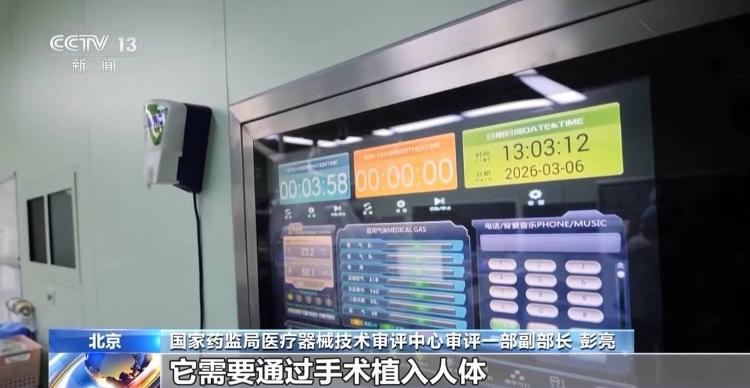 国家药监局医疗器械技术审评中心审评一部副部长 彭亮:这是我国批准的第一款,也是当前唯一的一款侵入式脑机接口医疗器械,它需要通过手术植入人体,属于高风险医疗器械。