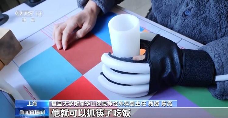 复旦大学附属华山医院神经外科副主任、教授 陈亮:抓握动作对我们来说,实际上它就完成了手的整个功能50%的功能,抓住以后,他抓筷子吃饭、抓笔写字就可以完成了。