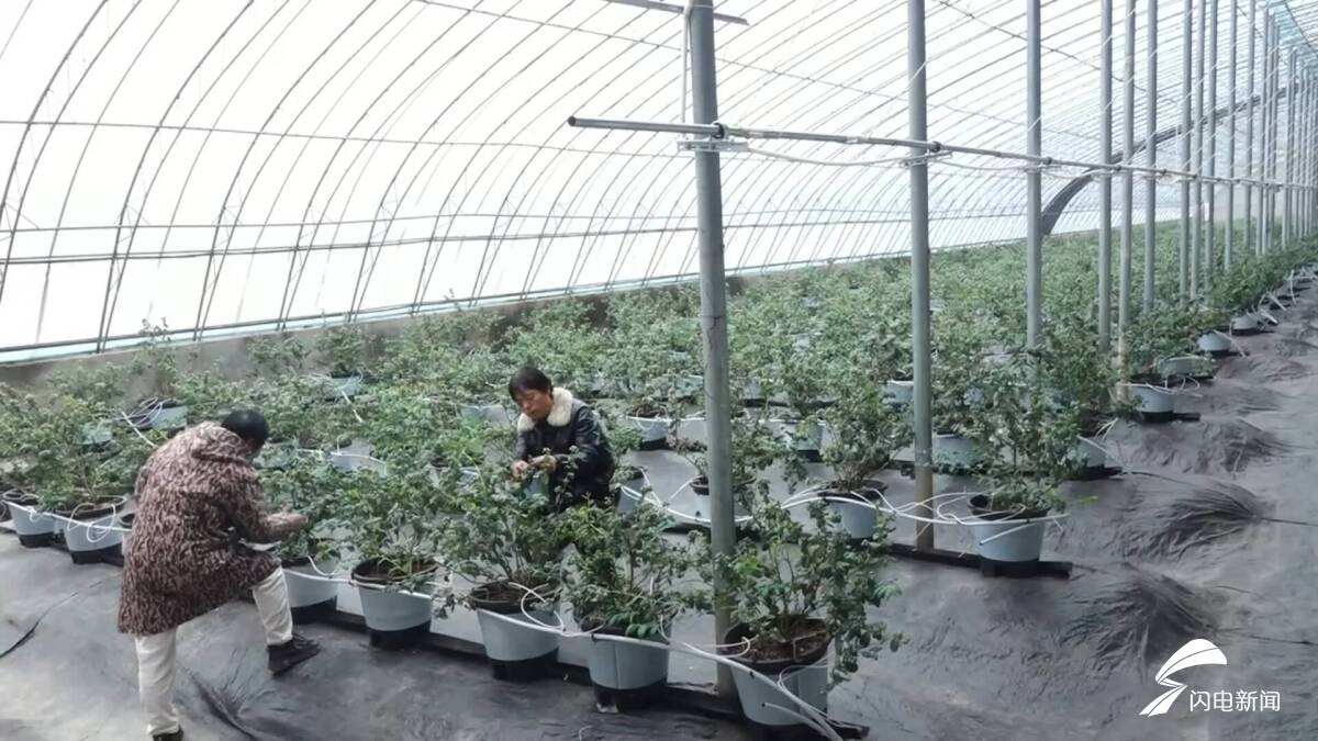 齐鲁网·闪电新闻3月13日讯 走进聊城市东阿县新城街道谷耘农业示范园的蓝莓种植大棚,一棵棵蓝莓树郁郁葱葱,枝头挂满了青紫相间的果实,村民俯身疏果,指尖轻巧摘除过密小果,为培育“精品果”做足功课。