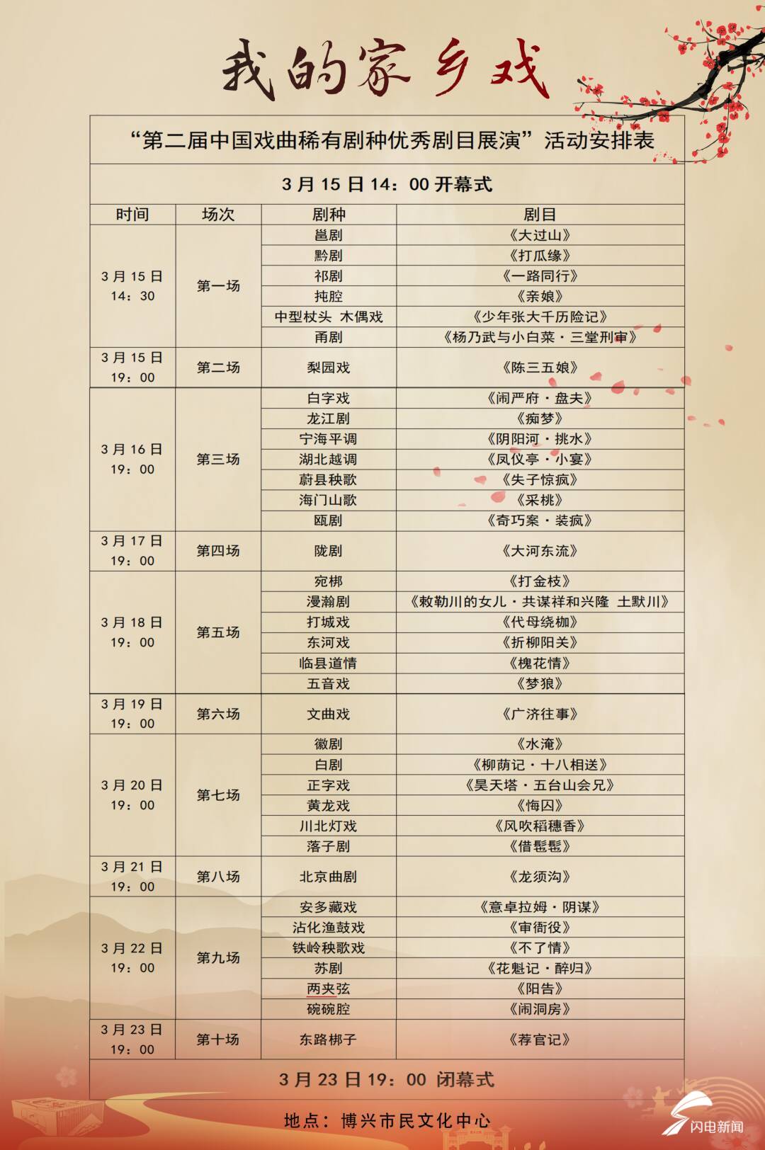 齐鲁网·闪电新闻3月14日讯 梨园雅韵传薪火,稀有剧种绽芳华。第二届中国戏曲稀有剧种优秀剧目展演将于2026年3月15日—23日在博兴市民文化中心举办,邕剧、黔剧、瓯剧、陇剧、甬剧,山歌秧歌、木偶戏,道情落子、两夹弦应有尽有,36个“天下第一团”、36部非遗剧种,带您领略传统戏曲的独特韵味。