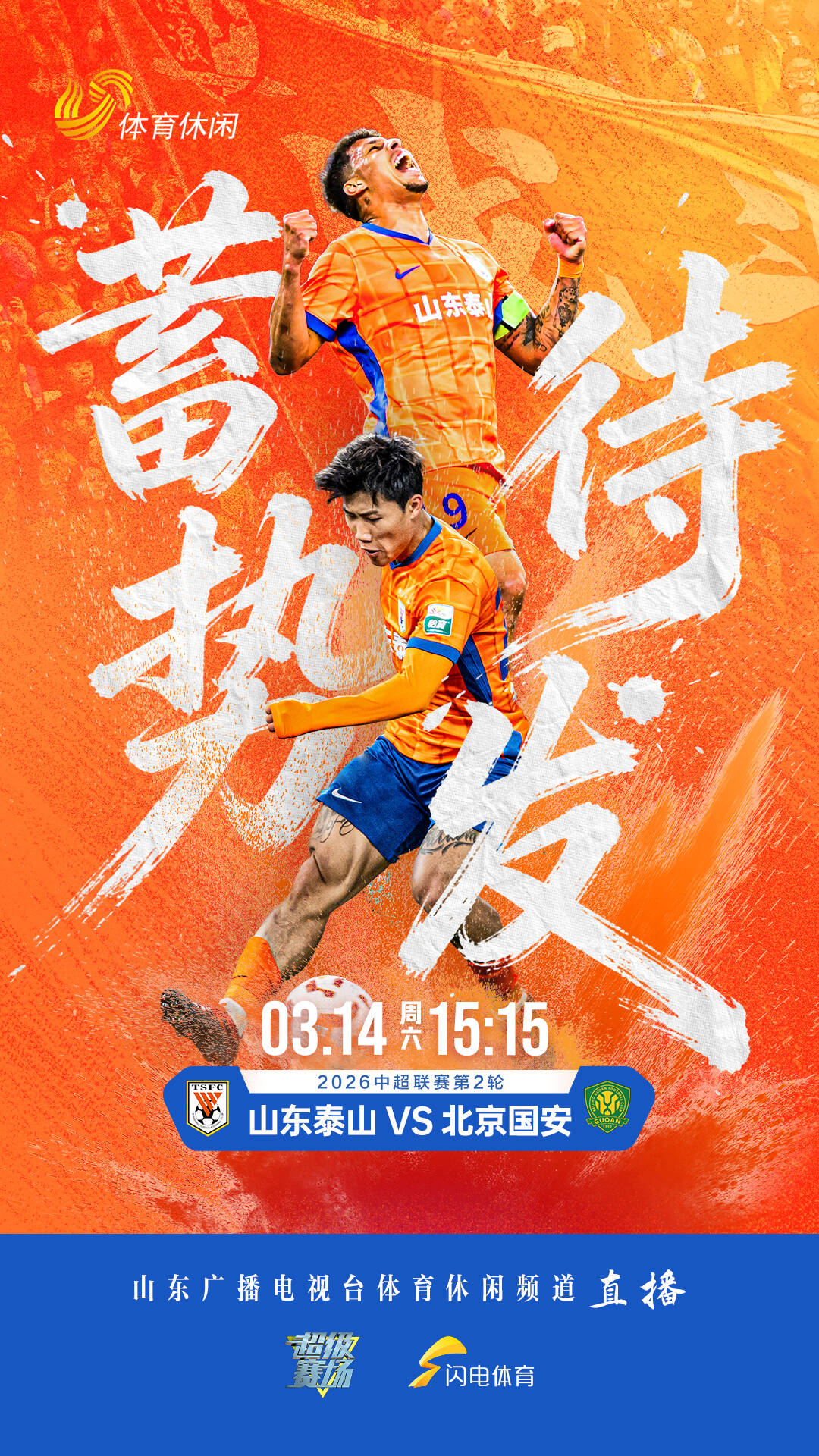 闪电体育3月14日讯 今天15:30,中超第2轮,山东泰山主场对阵北京国安,赛前双方的首发阵容出炉。