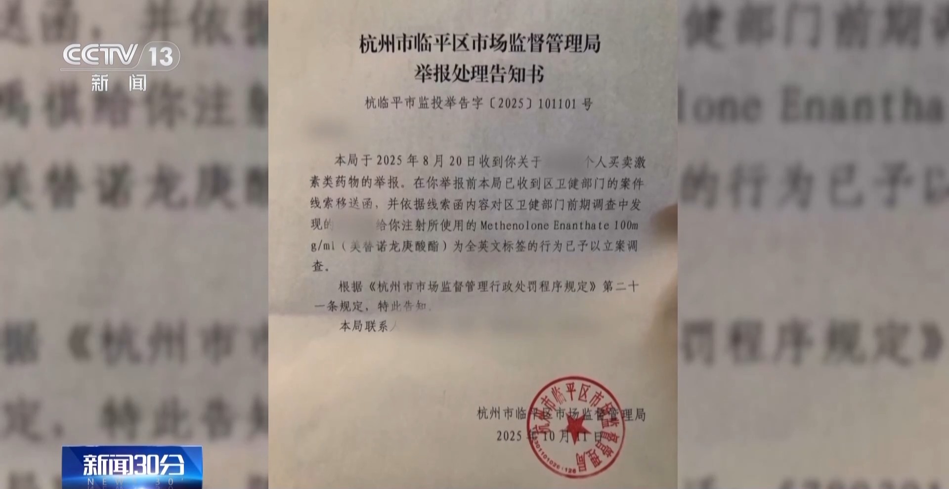 苏州市检察公益诉讼食品药品检测实验室顾问 温尧林:这三个产品,我们从中检测到了宝丹酮十一烯酸酯、环戊丙酸睾丸酮和去氢甲睾酮,这个结果和它们包装上英文标识是一致的,它们都属于合成代谢类固醇,但是它们在我国都没有获得国家药监局批准,在我国是没有合法身份的。