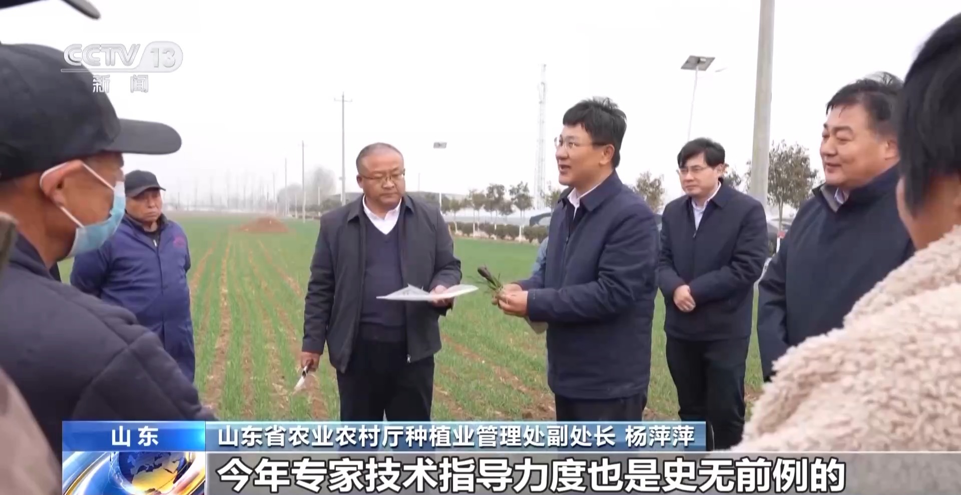 山东省农业农村厅种植业管理处副处长 杨萍萍:今年专家技术指导力度也是史无前例的,省内所有的涉农单位都被我们调动了起来,大家拧成了“一股绳”,全力推动小麦转化升级。下一步加大监测预警力度,随着天气的变化适时发布,提高发布频次,全力以赴支持小麦田间管理。