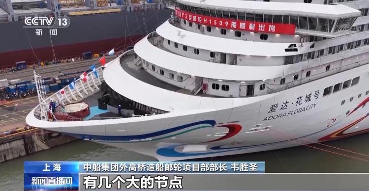 中船集团外高桥造船邮轮项目部部长 韦胜圣:一般来说我们的邮轮项目有几个大的节点,下坞仪式、出坞,包括试航以及最后的交付。出坞对船来说是一个比较大的节点,意味着真正是一条船,能够在水里浮起来了。下一阶段我们要从船坞移到码头,因为有一些系泊试验项目必须在码头进行,距离我们交付的目标越来越近了。