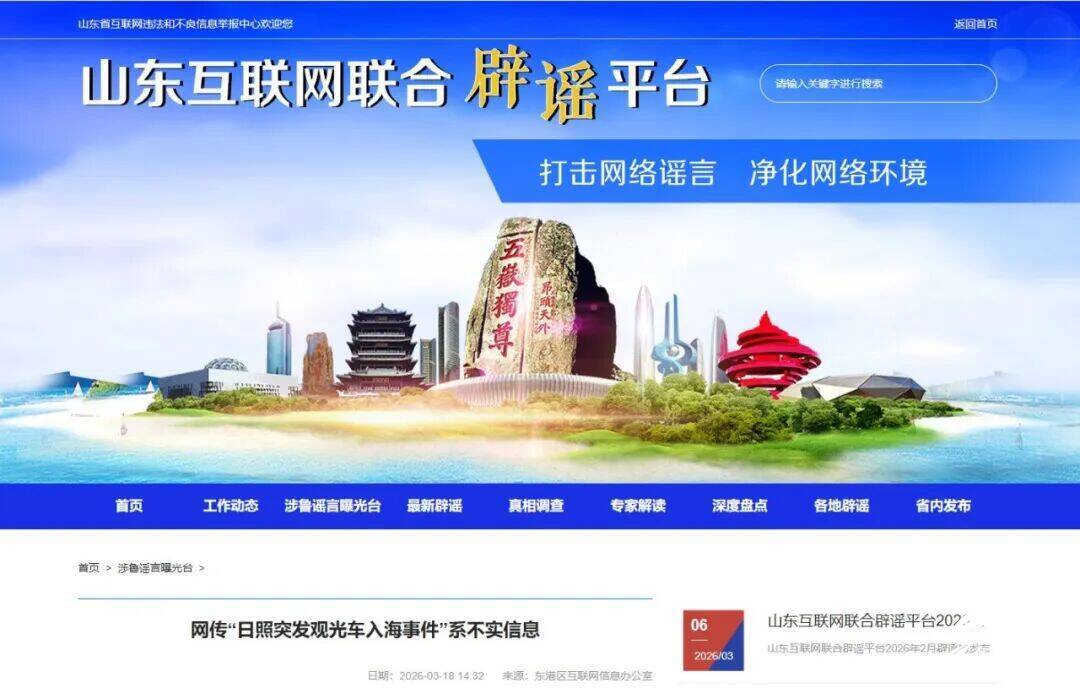 齐鲁网·闪电新闻3月18日讯 3月18日,山东互联网联合辟谣平台发布辟谣消息:网传“日照突发观光车入海事件”系不实信息。