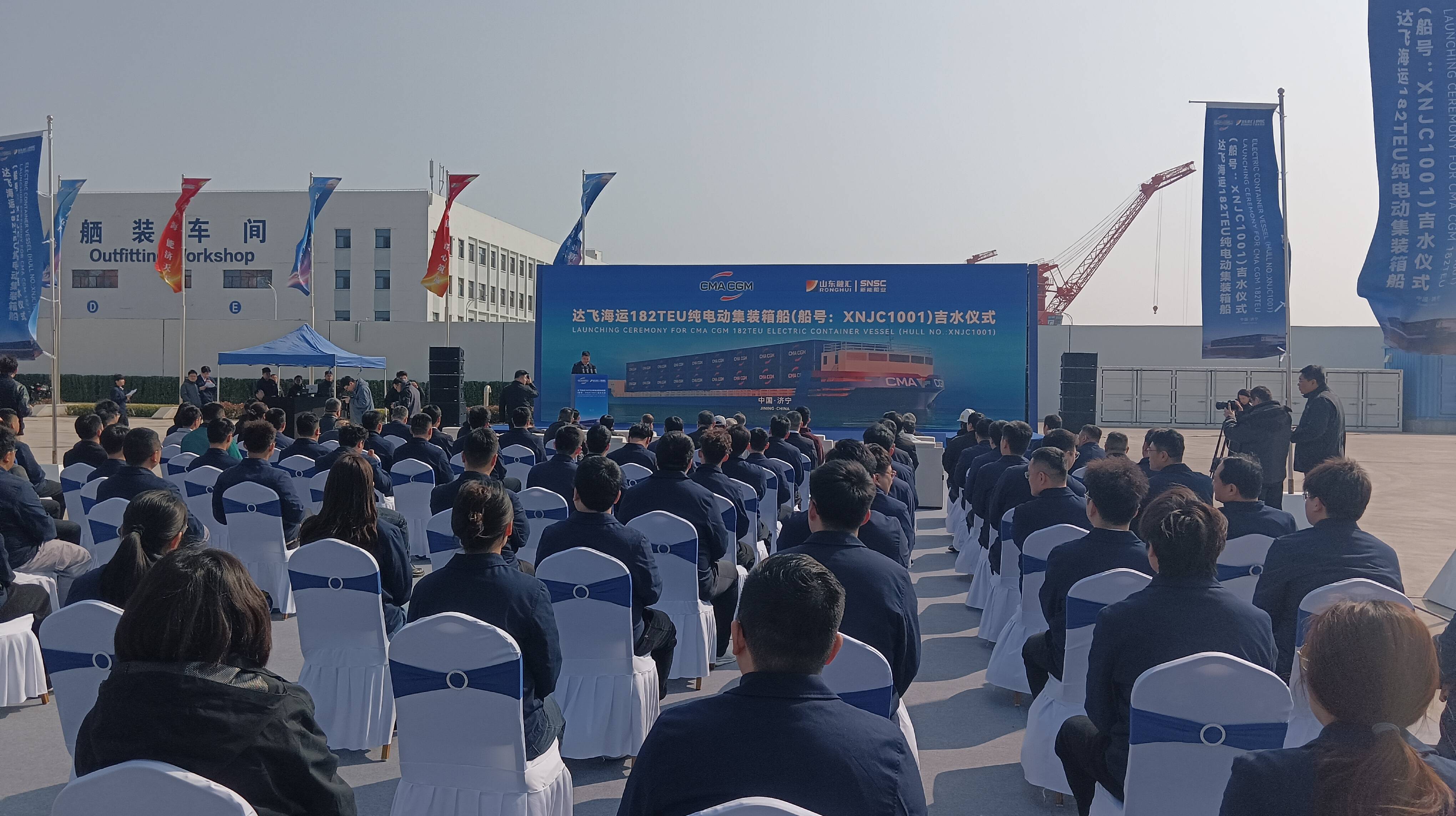 在现场,山东新能船舶技术有限公司船体组长何路告诉记者:“这艘船具备240公里纯电续航能力,全程零燃油、低噪音、零排放。年运输量超5万标箱,可减少二氧化碳排放778吨。这契合了海外客户零碳航运的商业战略。”