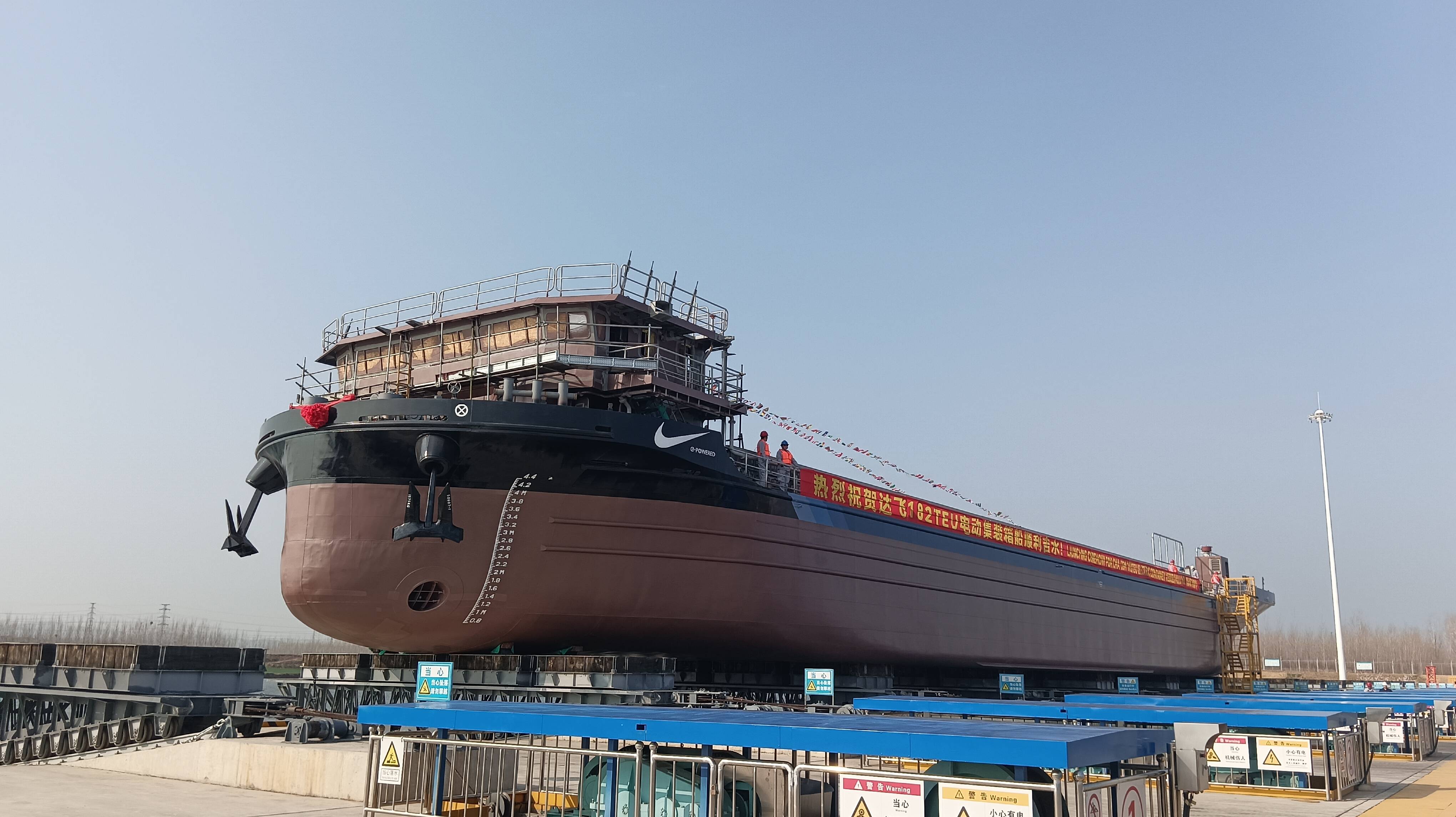 齐鲁网·闪电新闻3月19日讯 今天上午,国内首艘出口纯电内河集装箱船在济宁白马河畔下水试运行,中国自主研制的绿色内河船舶开始驶入国际市场。