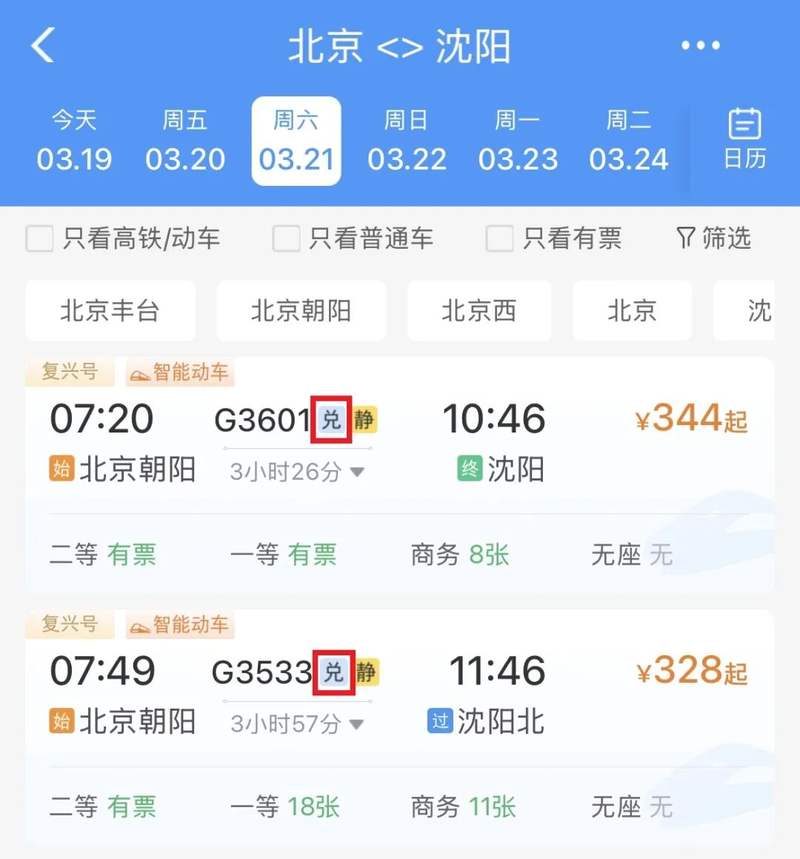 购票界面上标注“静”字的列车