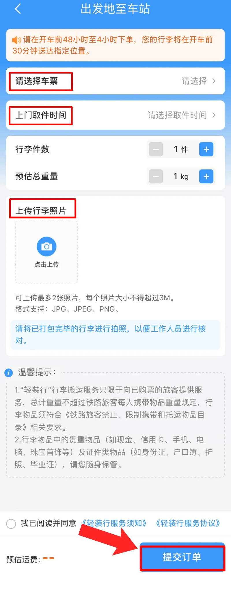 上传好行李照片