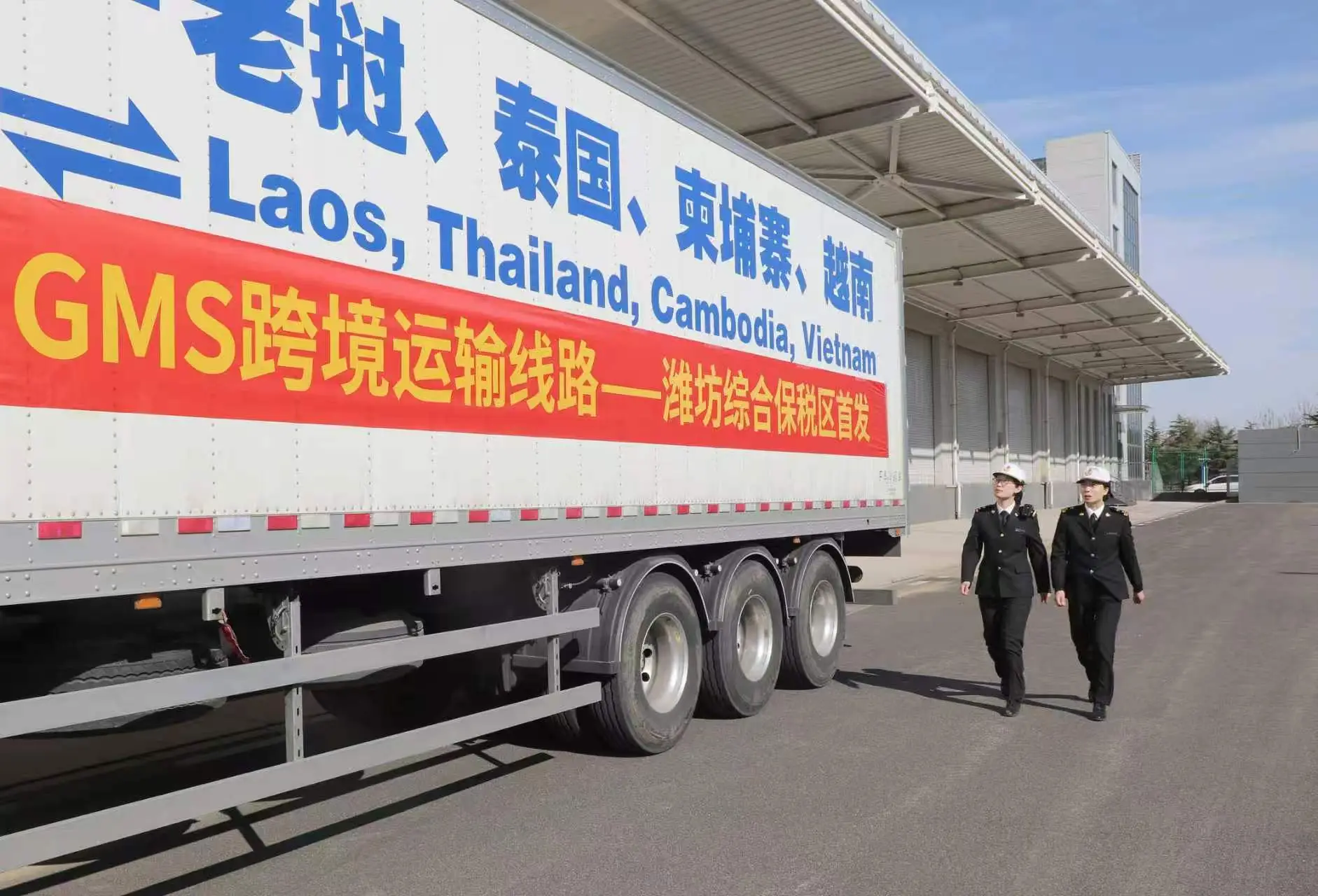 同一天,在潍坊综合保税区,一辆满载货物的GMS国际运输车辆完成查验,启程驶向越南,山东直达东南亚的陆路物流新通道由此打通。