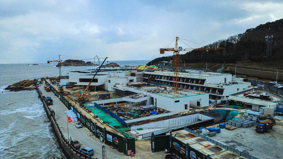 1月20日,荣成市港西镇沿河路西、闻涛路南,那香海国际康养示范区综合提升项目现场,2栋33层住宅楼已经封顶,即将开始内部装修;2栋17层住宅楼正在进行桩基施工。此外,1栋公共建筑及其配套设施楼也有序推进。