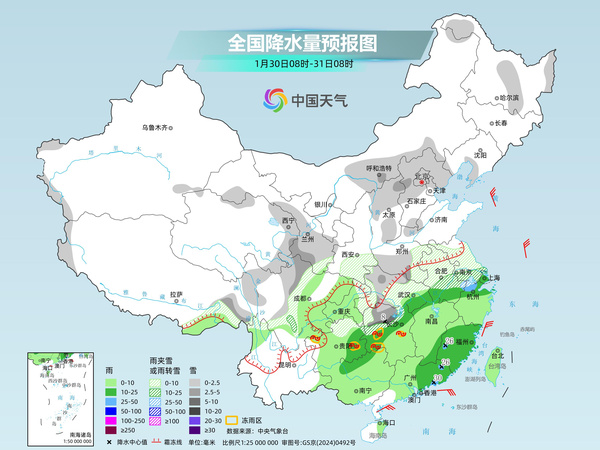 今天,雨雪范围将明显扩大,新疆伊犁河谷和沿天山一带地区、内蒙古中西部、东北地区东部、西藏北部和东部、西北地区中东部、华北中西部、黄淮西部、江汉西部、川西高原北部等地部分地区有小到中雪或雨夹雪,其中,西藏东南部、陕西东南部、河南西部、湖北西北部等地部分地区有大到暴雪。陕西南部、湖北西部局地有冻雨。西南地区东部、湖北东部、江淮、江南北部和西部、广西中部、广东、福建等地部分地区有小到中雨。