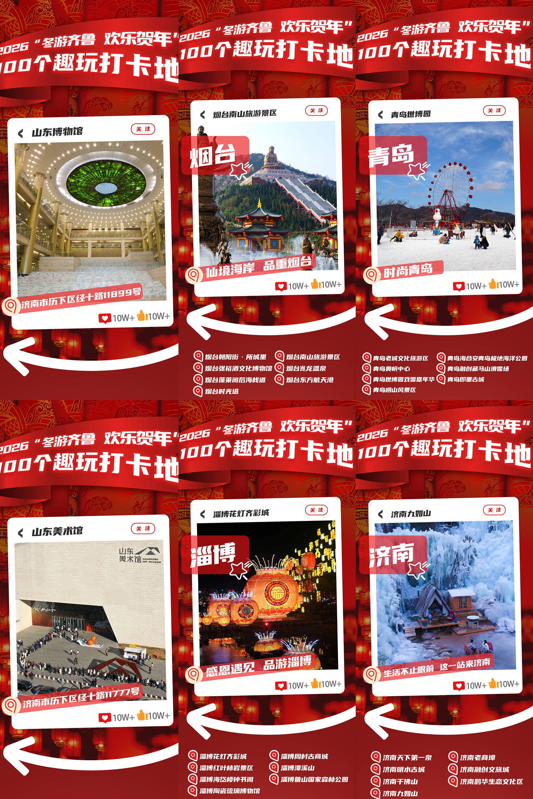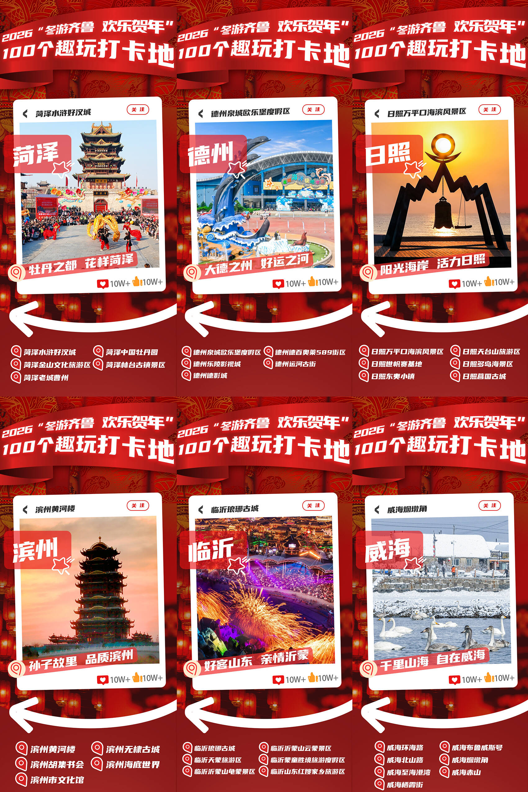 活动发布“三个100”特色清单,其中省文化和旅游厅推出2026“冬游齐鲁 欢乐贺年”100个趣玩打卡地,丰富假日文旅体验。