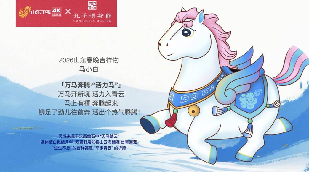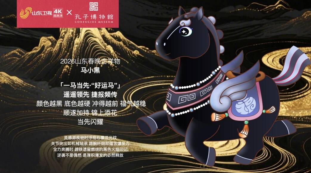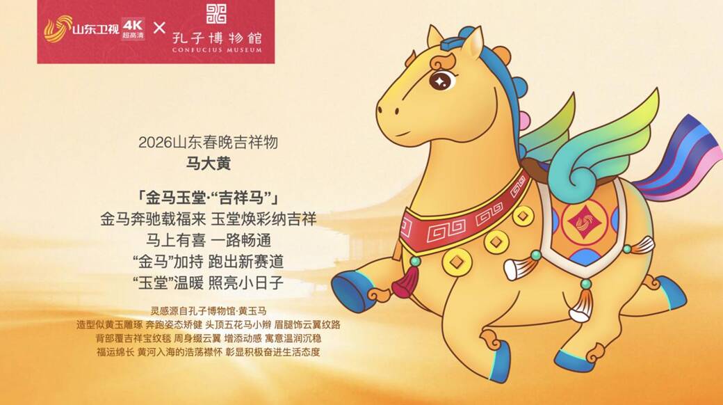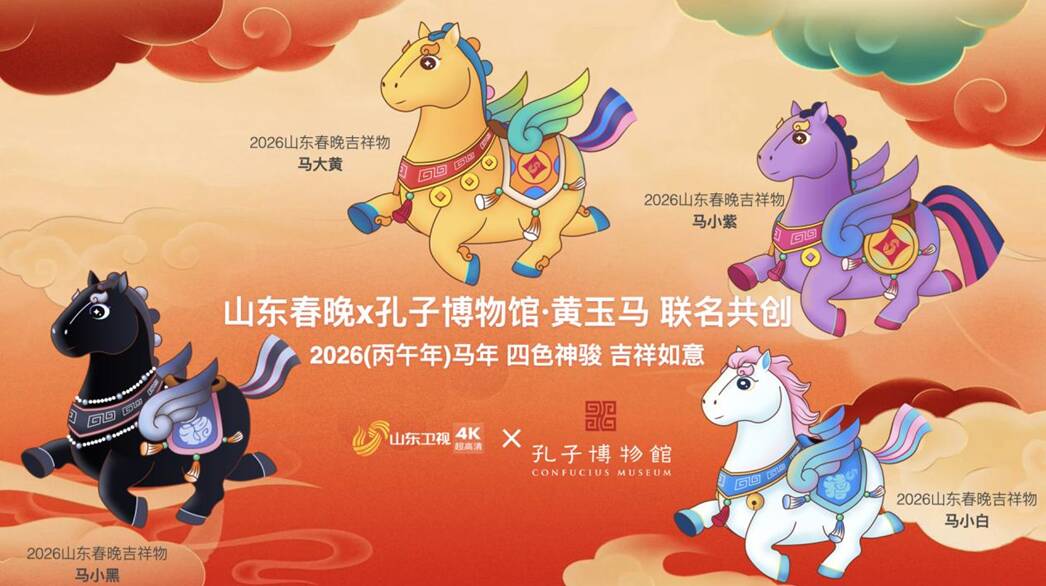 齐鲁网·闪电新闻2月4日讯 骏马送福,春满山河!山东卫视和孔子博物馆·黄玉马联名共创的《2026山东春晚》吉祥物马大黄、马小紫、马小白、马小黑正式对外公布。