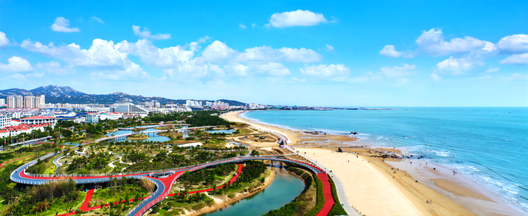 威海荣成桑沟湾:位于黄海之滨,山东半岛最东端,是中国日出最早的海湾,也是山东半岛最开阔的生态海湾,海岸线总长94.9公里,海域面积143.3平方公里。建设10公里带状滨海公园、占地3500亩的樱花湖体育公园和23万平方米的十里河文化公园,精细布局徒步骑行、露营游乐等濒海休闲场景,水脉与人文相映成趣。沿湾改造海水浴场2处,开放市民赶海、海钓场所6处,获批3个国家和省级海洋牧场示范区,年接待游客150多万人次。将生态优势转化为文旅产业优势,吸引国内外投资近千亿元,九龙城商业新城、樱花湖文体旅游等“水生态+”经济带迅速崛起,人海和谐,共享共融,宜居宜游,获评“山东人游山东”最受欢迎的县域旅游目的地。