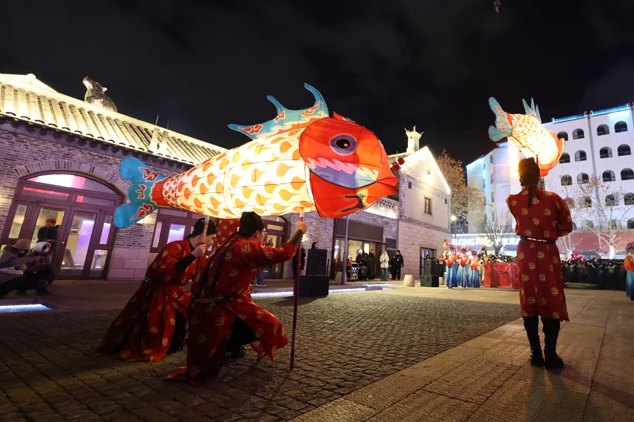 夜间,全国首创IP“赤骥腾春 好运环翠”将在8:00—9:00准时上演,以光影、音乐与剧情讲述祥瑞故事;20至40人规模的非遗鱼灯巡游流光溢彩,重现渔家文化的古老风韵;更有“打铁花”“火壶”等非遗绝技惊艳亮相,配合醒狮启新、新式花灯展,营造滨海“不夜天”的浪漫氛围。