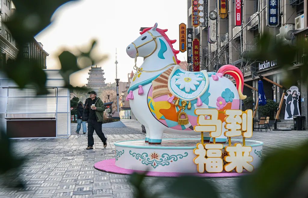 在属相街,新春主题市集热闹开街,专属五花马IP趣味打卡,40个汇聚非遗手作、马年文创、威海本地特色美食摊位,让游客一站式品鉴“老威海”的地道年味。街区深度融合“赤骥”“鱼灯”元素,与半月湾形成双向联动,打造调性统一、层次丰富的城市节庆IP。非遗手作工坊现场驻点,本地非遗代表性传承人亲自教学,市民游客可亲手体验马年面塑、精美剪纸等传统技艺,在指尖上感受中华优秀传统文化的魅力。