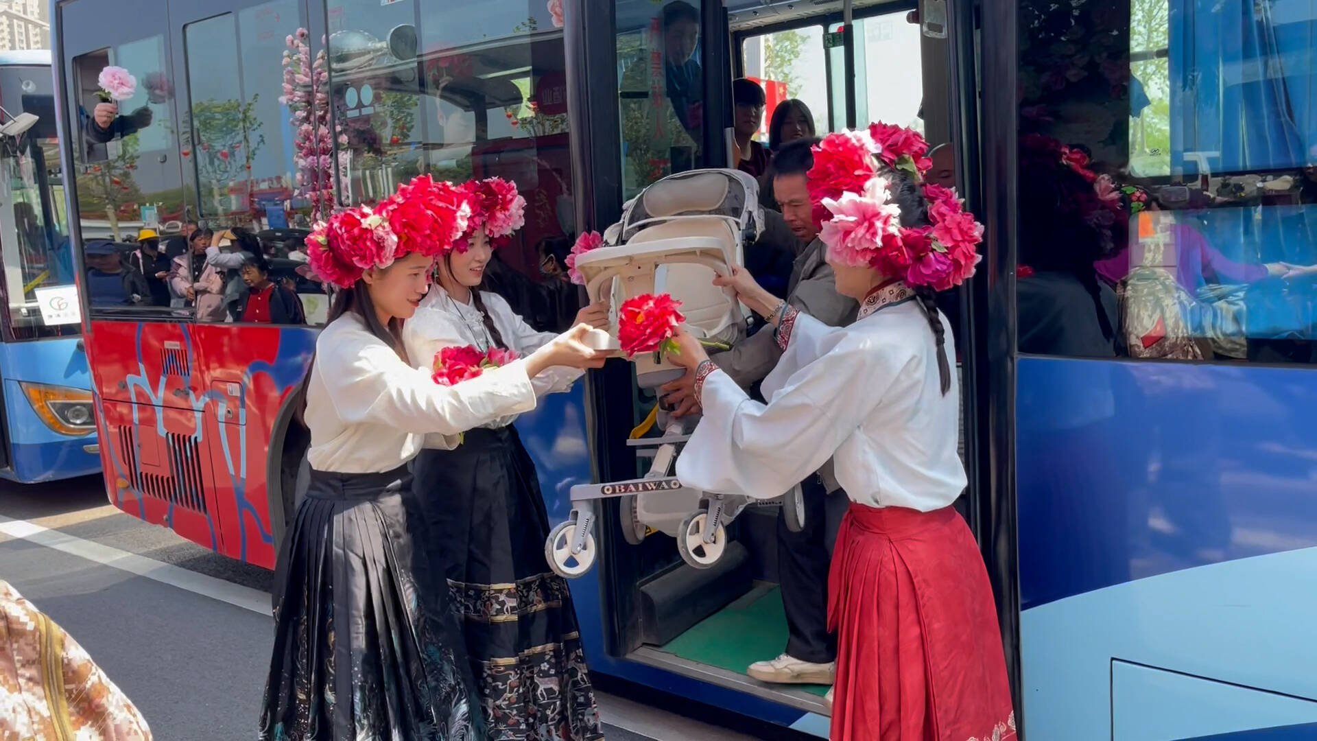 菏泽城际公交还在牡丹节会期间组建了一支由30余名志愿者组成的服务团队,分别在火车站、曹州牡丹园、天香公园等关键区域设立“暖心服务岗”,通过提供公交导乘、旅游咨询等全方位便民服务,全力保障游客出行顺畅。
