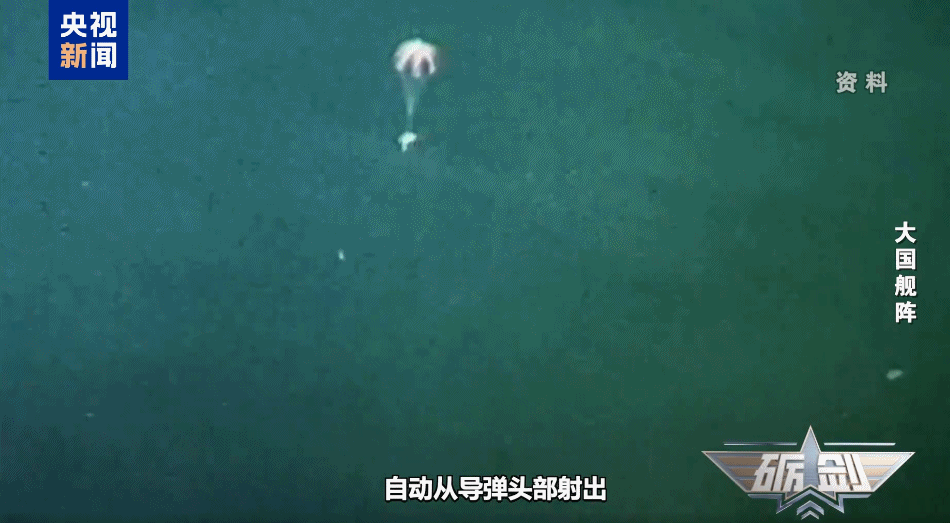 在距离海面还有几千米高度时,装有导弹飞行重要参数的数据舱自动从导弹头部射出,打开降落伞,徐徐飘落海面。