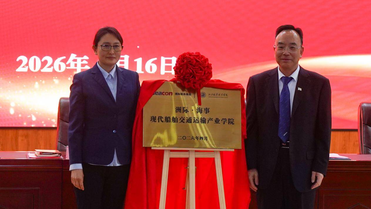 仪式上,山东海事职业学院校长助理陈铭志致辞。她表示,学校深耕航海教育领域多年,打造了省级航海技术高水平专业群、“双高计划”海洋工程装备技术专业群,在航海人才培养、专业建设等方面积累了深厚实力,为此次校企深度合作奠定了坚实的办学基础与人才支撑。陈铭志强调,学校将以此次共建产业学院为重要平台,深度融入洲际船务集团的行业标准与产业需求,创新校企协同育人模式,精准对接航运产业岗位需求,着力培育兼具专业素养与实践能力的高技能航海人才,助力航运业高质量发展,切实践行职业教育服务国家战略的责任担当。