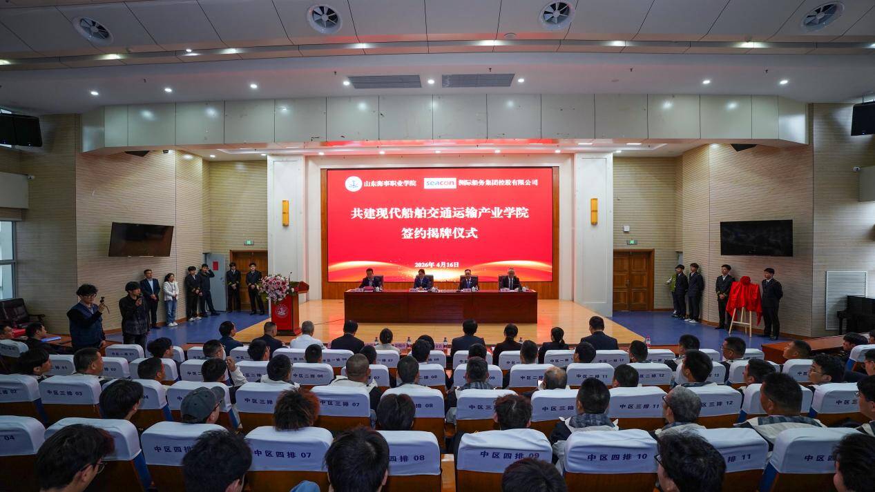 齐鲁网·闪电新闻4月17日讯 4月16日,山东海事职业学院与洲际船务集团控股有限公司共建现代船舶交通运输产业学院签约揭牌仪式顺利举行,双方携手开启产教融合、校企协同育人新征程,为现代船舶交通运输产业高质量发展注入新动能。