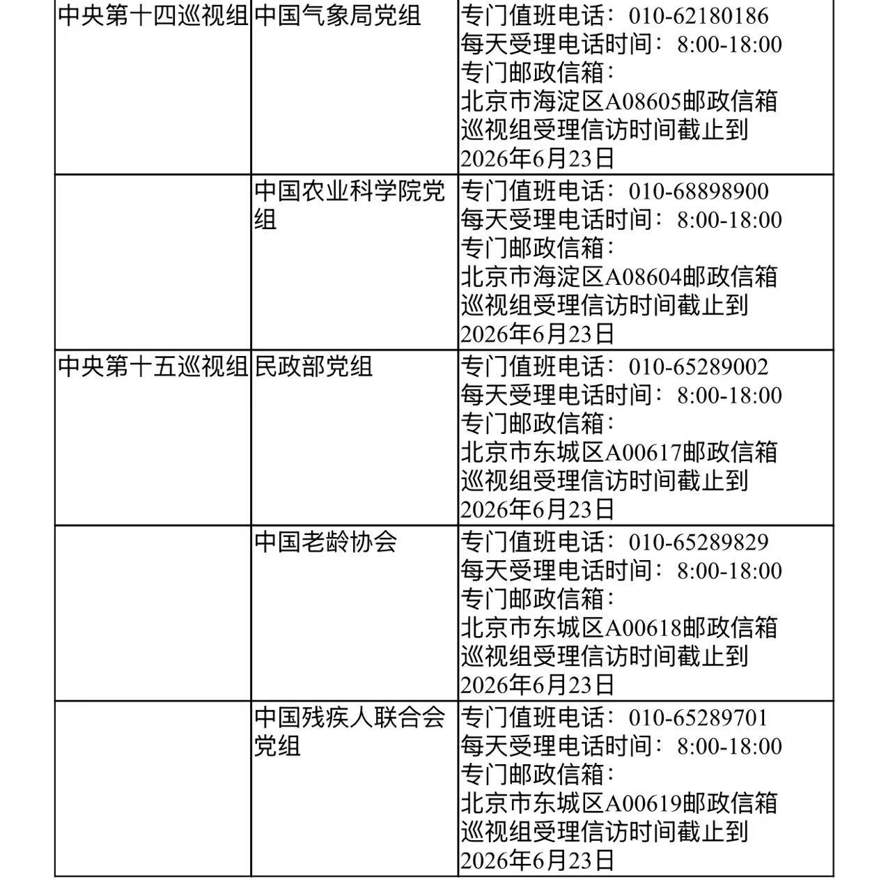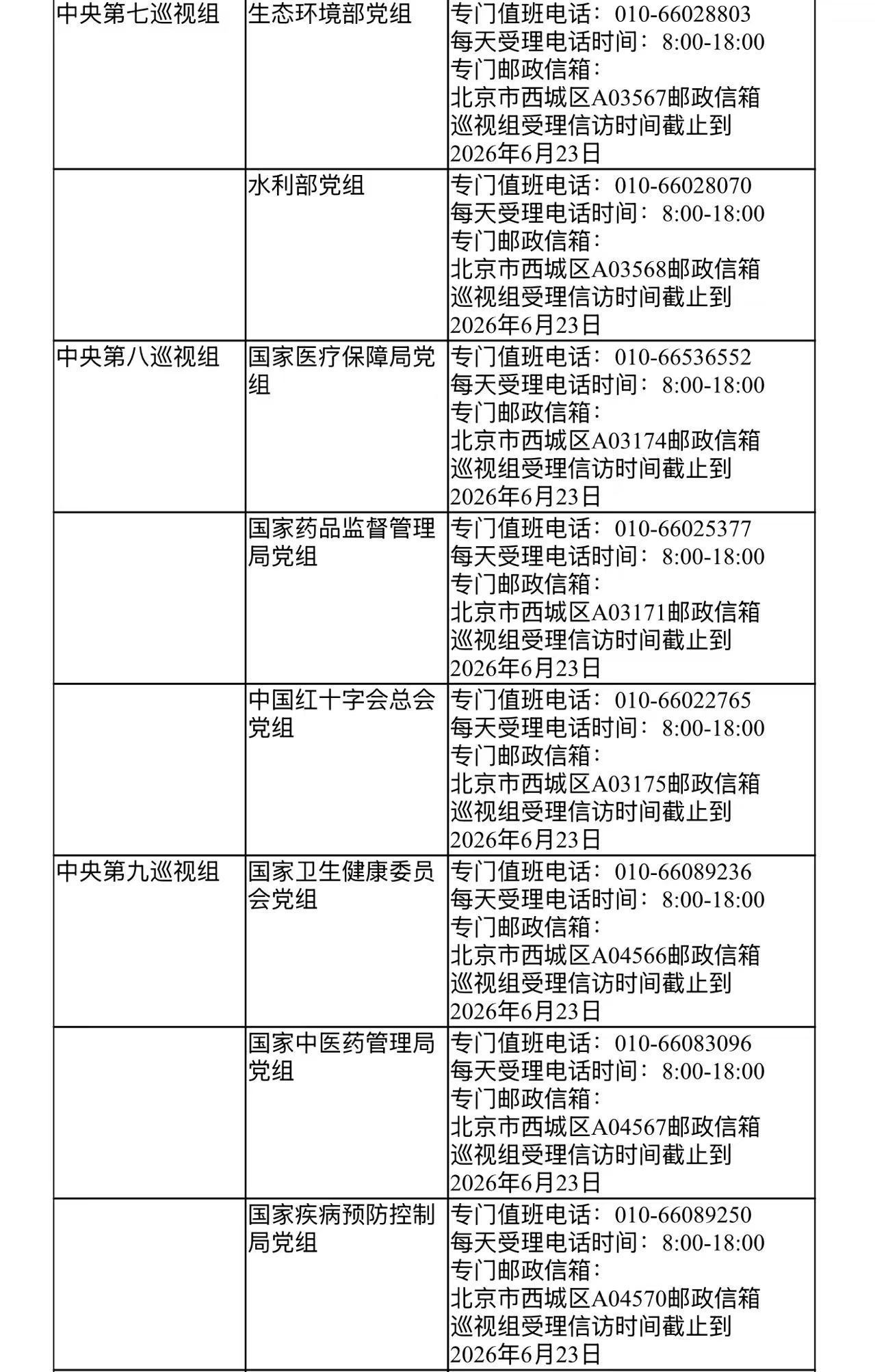 已进驻中央巡视组联络方式: