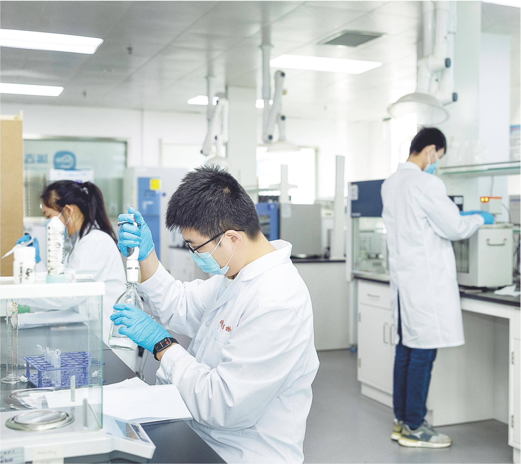 图为瑞吉明(山东)生物科技有限公司实验室内,工作人员正在做实验。