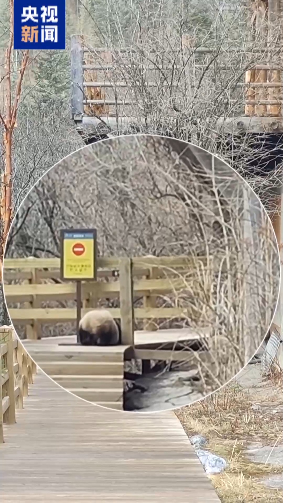 2026年3月29日上午8时42分,九寨沟景区工作人员在每日例行巡护中,在景区长海往老人柏下车点方向的栈道上,发现一只大熊猫的身影。