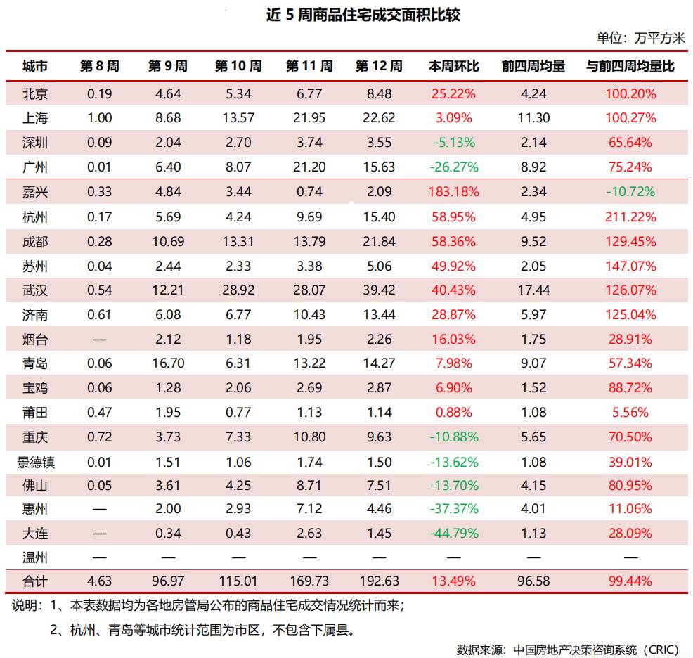 中房研协监测数据显示,2026年第12周(3.16-3.22)20个典型城市商品住宅成交总面积达192.63万平方米,环比增加13.49%。