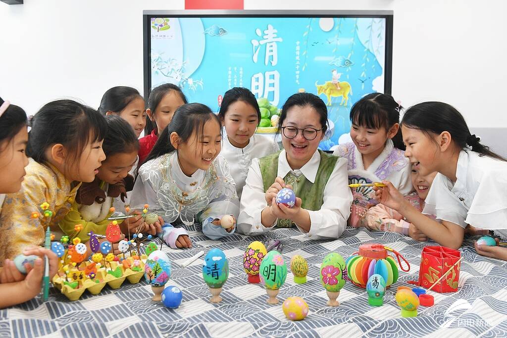 齐鲁网·闪电新闻4月3日讯 4月2日,山东青岛。清明节临近,青岛市市北区杭州路小学开展“多彩民俗迎清明”主题活动。孩子们通过做青团、绘制五彩蛋等形式,传承清明民俗,感受中华优秀传统文化的魅力。图片来源:视觉中国