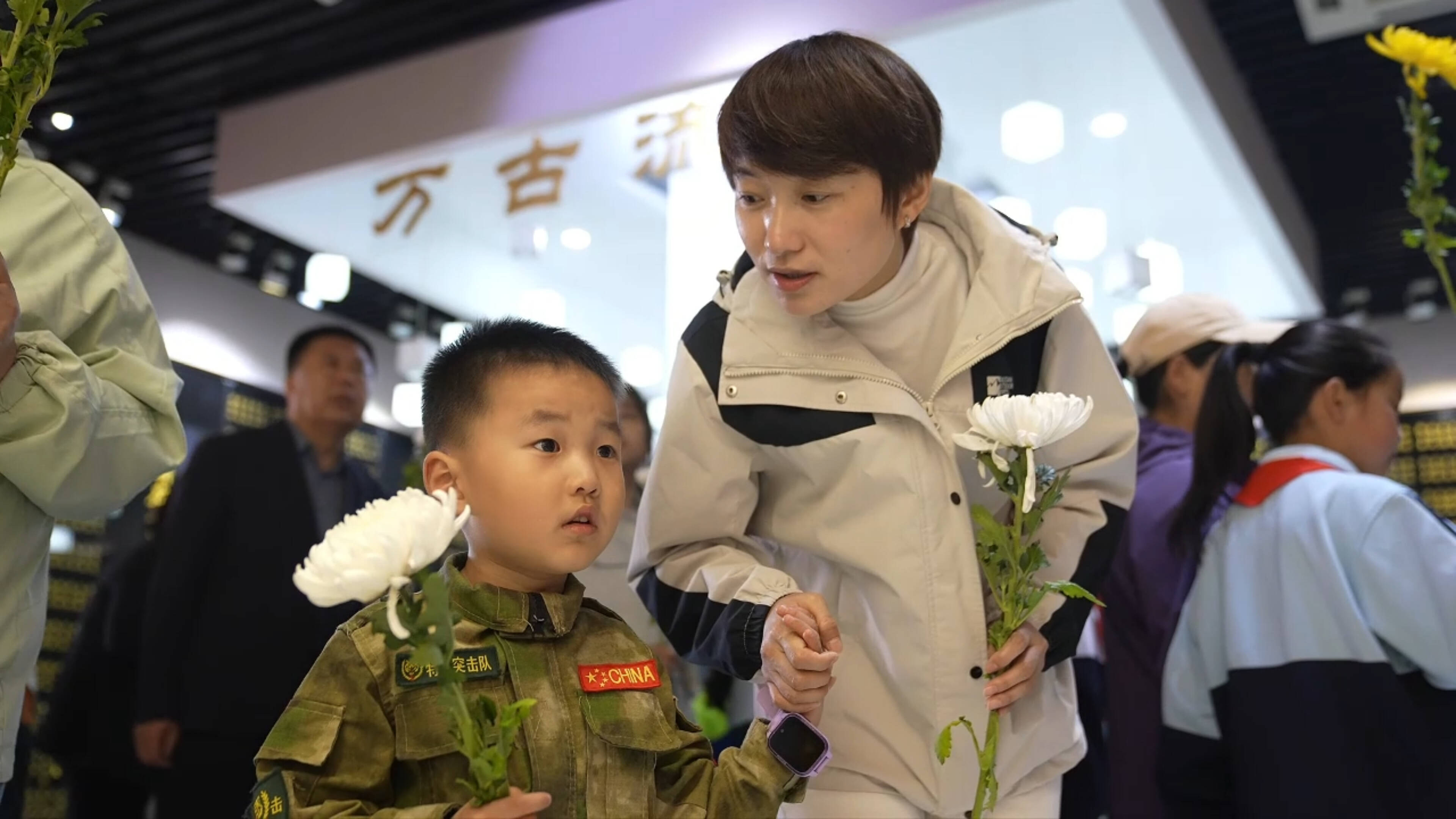 祭扫活动结束后,全体人员移步到烈士事迹展馆。在讲解员深情而专业的讲述中,一幅幅历史照片、一件件革命文物变得鲜活起来。大家凝神聆听,“大手”与“小手”共同感受先烈的信仰力量与家国情怀。