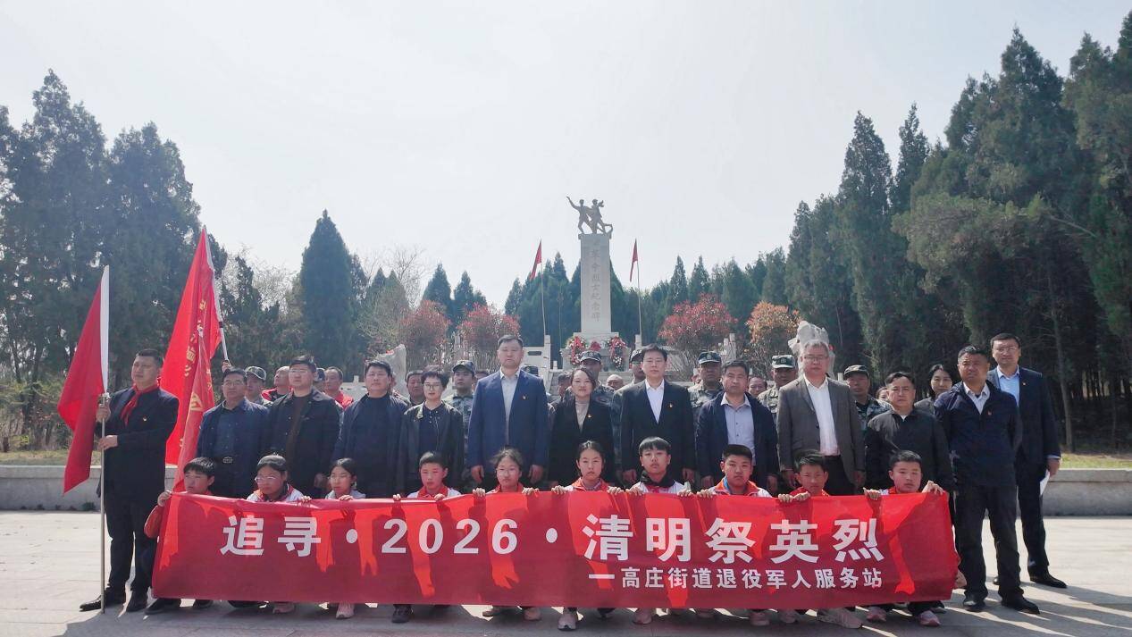 齐鲁网·闪电新闻4月5日讯 4月3日上午,济南市莱芜区高庄街道在高庄革命烈士纪念碑(园)举行 “追寻·2026·清明祭英烈” 祭扫活动。街道领导班子成员、区管干部、武装部民兵代表、退役军人代表、退役军人服务站工作人员及学生代表参加活动。