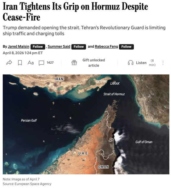 △《华尔街日报》报道,尽管达成了停火协议,但伊朗仍加强了对霍尔木兹海峡的控制