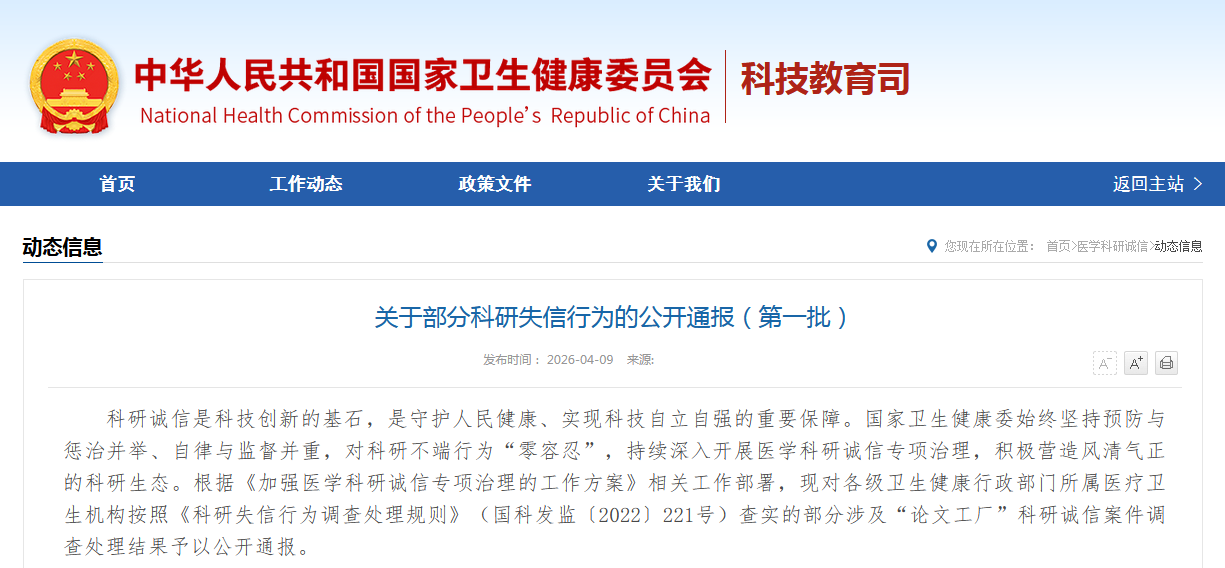对科研不端“零容忍”!国家卫健委通报10起科研失信行为